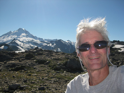 From here you can gaze down upon the glaciers that clothe the eastern slopes of Mt Baker.