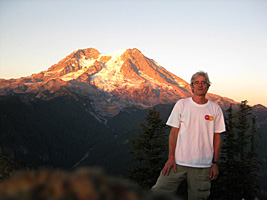 And speaking of mountain obsessions, I am not alone. This year I ran into Harald from Heidelberg, Germany. He also loves the mountains, and he has a photography obsession even worse than mine ! I couldn't get him to stop taking sunset pictures and give me back the Marmot jacket I had loaned him to ward off the evening chill until it was completely dark ! Fortunately, I had brought a headlamp to light our way back down to the parking lot in Paradise (yes, in relation to how high we were, even Paradise is down below !)