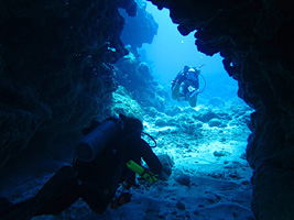 Besides the dramatic Wall, there is other inviting underwater topography in Grand Cayman. Many tunnels, coral canyons, and assorted swim-throughs can be found throughout the surrounding reef.