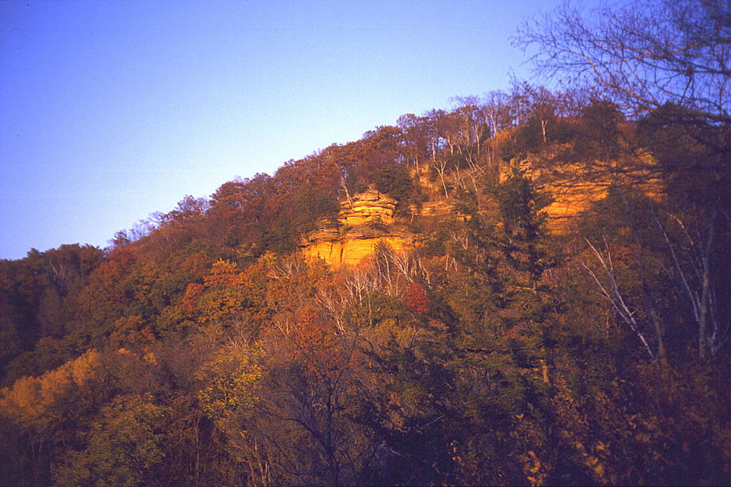 Brady's Bluff with its sandstone cliffs seen from atop Trempealeau Mtn.