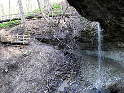 This is where the official "trail" ends. I remember when an ancient foot trail, sans boardwalk, continued down the gorge along the watercourse, all the way down to the Mississippi below. But I wouldn't go there, if I were you. The are few electrical outlets and the cellphone reception is so-so...