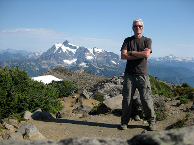 Monday, after a stop for mountaineering/camping supplies at REI, I drove up I-5 thru Bellingham and onward along the Mt Baker highway. Eventually, I reached the final parking lot above the Mt Baker ski area. Been here before. I finish packing, hoist my backpack, lock the car, then start hiking along Ptarmigan Ridge.