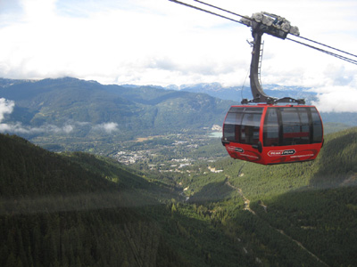 For my last few days in the Pacific Northwest, I drove up through Vancouver and paid a visit to Whistler mountain resort, host of the 2010 Winter Olympics. A gondola runs up to the summit of Whistler Peak. Then the longest gondola span in the world connects the twin peaks of Mt Whistler and Mt Blackcomb.