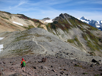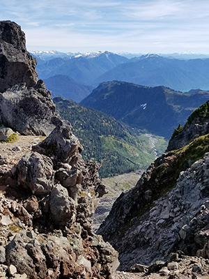 The end of Ptarmigan Ridge gets pretty knarly. A view to the south toward Baker Lake.