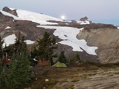 Rise and shine! Watching the moon set behind Mt Baker in the early dawn.