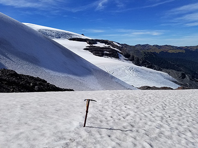 I always take my trusty ice-axe along on a snowfield/glacier. It's makes such a good prop!