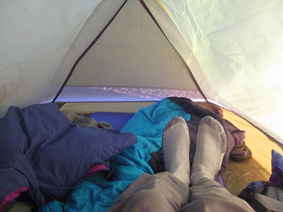 So I crawl back into my sleeping bag to wait for the sun to warm things up. Now it finally has.