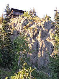 From here, a winding trail (and about 90 minutes) takes you up to the top of Gobbler's Knob, where there is perched a firewatch station (no longer occupied).