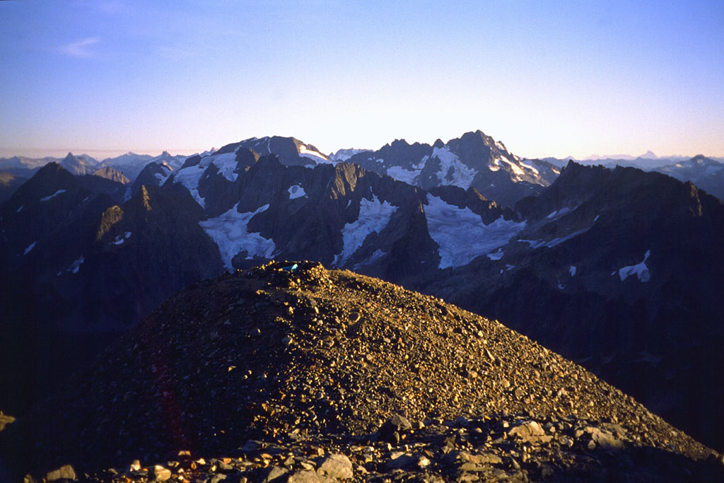 High camp at Sahale Glacier ( that little blue thing is my tent ).