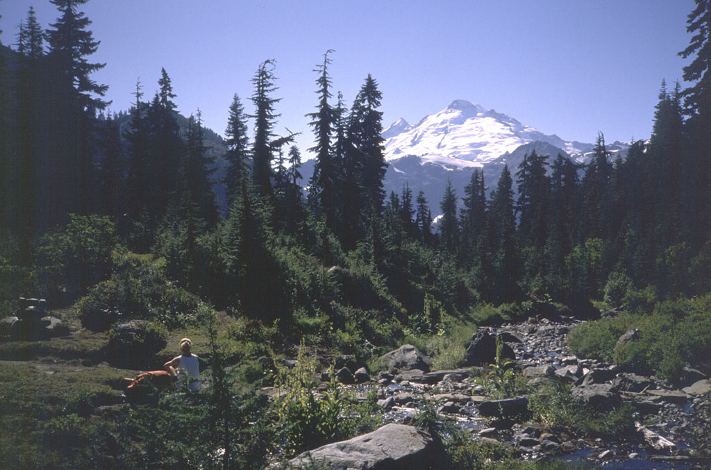 Taking a break on the way to Lake Ann... Mt Baker in the distance.