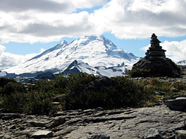 Wednesday provided the weather break I was hoping for. I left Bellingham early and cruised up the Mt Baker Highway with a hint of blue skies to come. I thought to try my luck at Lake Ann again. Last year hadn't worked out too well, so I figured maybe I was due this time. But before starting out on the long hike in, I decided to "profit from the moment" and climbed up the rocky mesa of Table Mountain to take in the magnificent views of Mt Baker and Mt Shuksan (on opposite sides) while the weather was good.