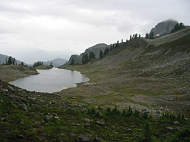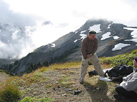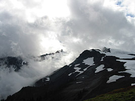 After a recovery day in Bellingham (a good meal and a couple o' pints at L'Chat Noir certainly helped), I was ready to go back and do it all again. But my time was getting short. The clouds were still pretty thick up in the mountains, but at least you could usually see where you were going. So I hiked along Ptarmigan Ridge toward Mt Baker, which was invisible, but you could feel its presence.