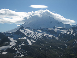 My first idea was to hike along Ptarmigan Ridge and camp somewhere near Mt Baker. But after talking to a ranger in Glacier, I decided against this plan. There was still plenty of snow left over from last year, and the trail was treacherous in spots. Also, I knew there would be a good chance of whiteout conditions on the day I planned to hike out...