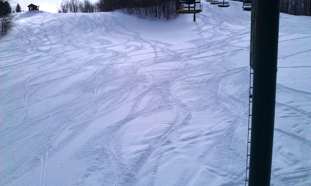 Those single-track S's in the groomed zone are my snowboard cuts