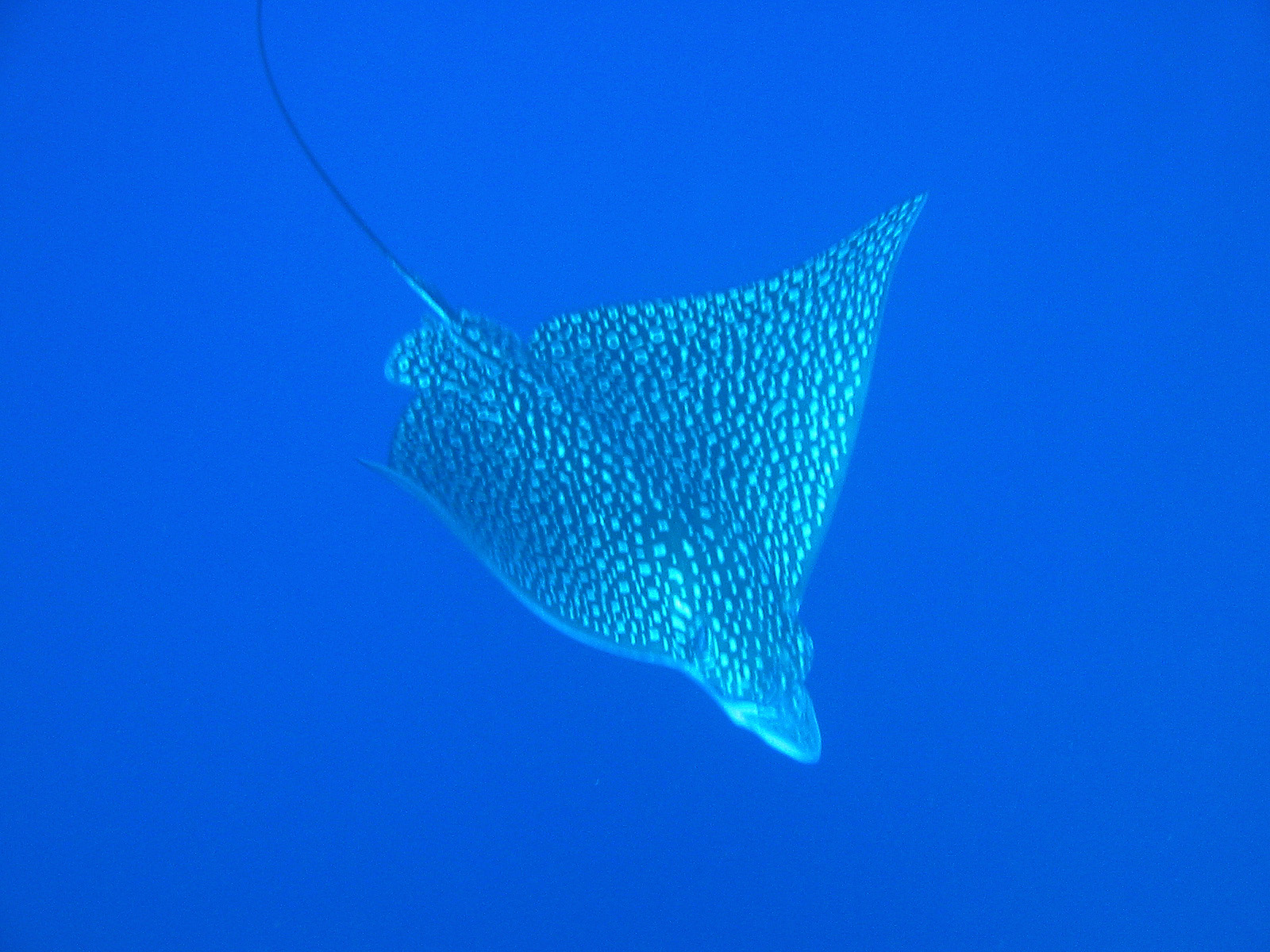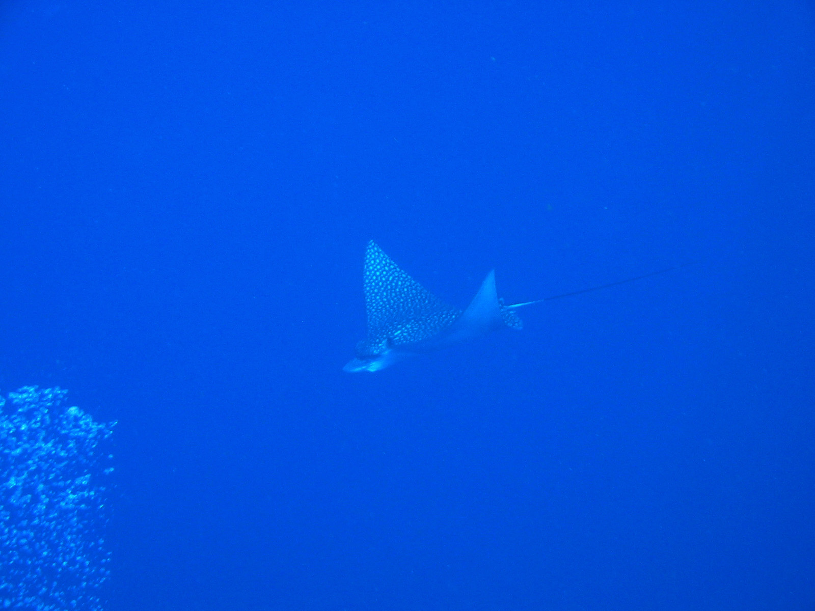 There were no confirmed sightings of hammerheads on my dives this time (naturally, there are always claims, but it takes a second sighting to certify it, given the level of N2 in the blood at that depth). But a big spotted eagleray put on a splendid performance for us and I'm glad I had my camera handy !