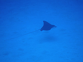 And this spotted eagleray cruising over the sandy bottom, closer to shore...