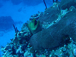Oodles of tropical fish and other sea creatures have moved in to make this place their home. Like this moray eel...