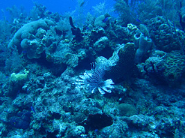 Unfortunately, not all spectacular looking fish are entirely welcome here. Lionfish are an invasive species in the Caribbean. It's the only fish that divers are allowed, even encouraged, to kill within the boundaries of the protected marine park. The Caymanians are working on new Lionfish recipes all the time. Humans are currently their only predator (those spines making up the "mane" are highly poisonous).
