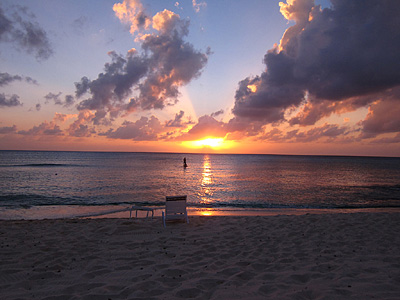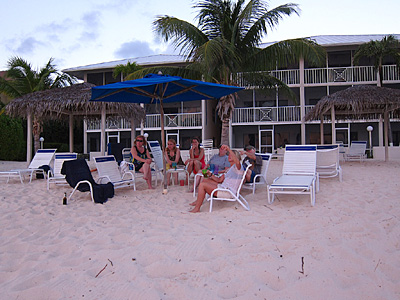 I spend most of Friday undergoing serious R&R on our little piece of 7 Mile Beach. Pete, Jill, Fran, Rachel, and (newbie) sister Kelly are already there. So is Patti. Marty and Kay will arrive later. Inevitably, Marty will point to where the infamous green flash will magically appear at sunset, if only our luck holds. (Not)
