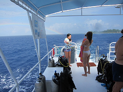 Back on the surface, a brief downpour is followed by a spectacular rainbow. Kana and friend take advantage of the photo op. And so do I!