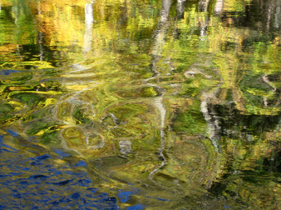 I was mostly disappointed with the results, except for two photos. For those, I had pointed the camera down into the water. To my surprise, the rather dull leaf colors that year produced some amazing images when warped by the water's surface. It brought to mind certain French Impressionists, not to mention a few youthful psychedelic experiences!