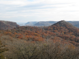 This year, after lawn raking chores were done, I made a day trip back to Trempealeau County to see how things had progressed since I had camped there in mid October. At that time, the oaks had not even gotten started with their color changes. But by the time I returned, many had dropped their leaves already.