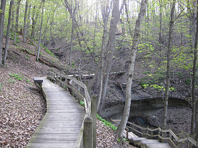 Here, a boardwalk snakes along the bluff bordering the Mississippi River below. The original trail was highly susceptible to erosion, and besides, the walkway looks pretty nice as it follows the contours of the landscape. I think Frank Lloyd Wright would approve. Hats off to Iowa to getting it right. I wish the Wisconsin DNR could do something similar on the other side of the River. But they have totally abandoned the trails that used to follow the bluffs on that side, after the Big Deluge that also wiped out a few towns along the Kickapoo River.